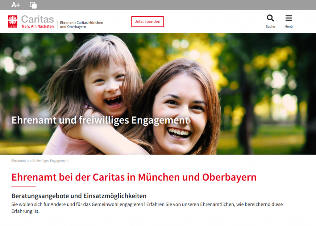 Die Caritas ist eine der größten Hilfsorganisationen Deutschlands. Sie überzeugt mit einer klar strukturierten Website, die vielfältige soziale Angebote und Möglichkeiten zum Spenden oder ehrenamtlich Engagieren übersichtlich präsentiert.