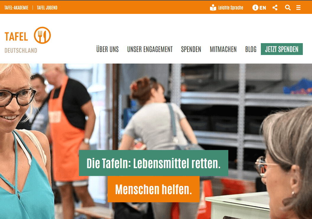 Tafel Deutschland e.V. versorgt bundesweit bedürftige Seniorinnen und Senioren mit Lebensmittelspenden und organisiert regionale Ausgabestellen sehr transparent – ideal für Spender, die Lebensmittel in ihrer Nähe zur Verfügung stellen möchten.
